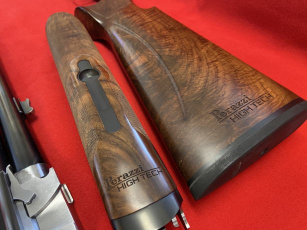 また銃床左サイドにも「Perazzi HIGH TECH」の彫り込み、美しい木目と共に高級感が漂います。