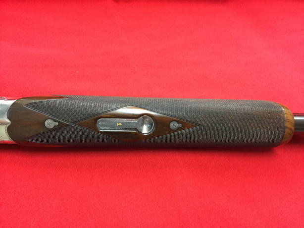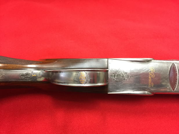 機関部は左右それぞれ、一枚のプレートから削り出して、部品を取付けていくという、とても手のかかる作業で、最高級の上下二連銃にしか使われない技法です。ハンマースプリングには、松葉バネを採用しています。